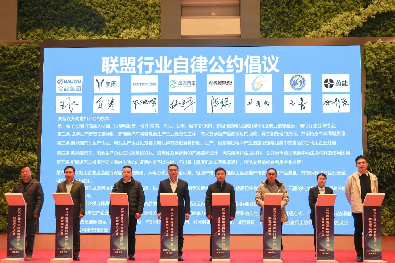 12月20日,武汉锂电池回收利用产业联盟成立,武汉动力电池再生技术有限公司、武汉理工大学、武汉市公共交通集团有限责任公司等20家代表单位成为产业联盟首批成员。会议由武汉市长江新区管理委员会、武汉市经济和信息化局指导、武汉市新能源汽车产业协会主办,格林美集团子公司——武汉动力电池再生技术有限公司(以下称“动力再生”)出任理事长单位并承办,共40多家企事业单位参加成立大会。首批加入联盟的成员包括新能源汽车生产企业、电池生产企业、新能源汽车销售及运营企业、电池运营企业、梯次利用企业、再生利用企业、电池物流运输企业、科研院所。